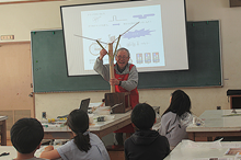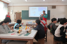 ![]() リーダーが工作のしかたを説明 |