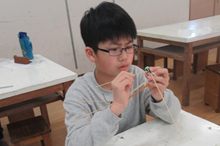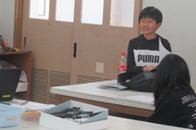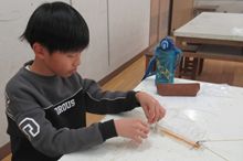 細かい部品を正確に取り付けるのに苦労しているクラブ員も多かったですが、みんな羽根の羽ばたきがおもしろいと感じてくれたようです。早く完成したクラブ員は廊下で試験飛行をしました。
