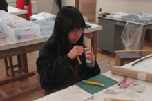 ![]() 弦張りに苦戦 |